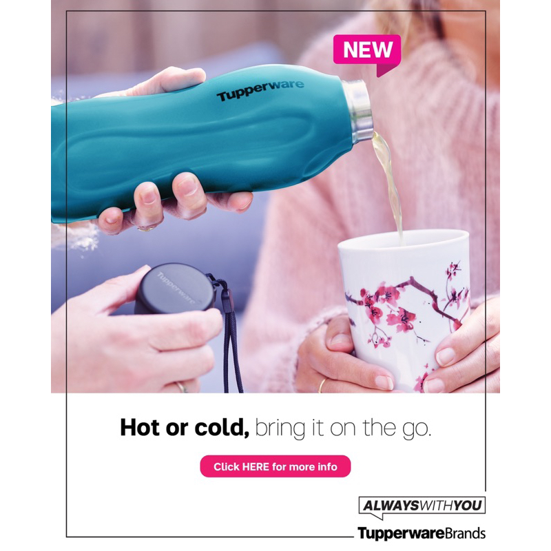 Tupperware Glitter Insulated Eco Bottle 1 unit 550ml with Strap & gift box can keep 6 hour hot water 12 hour cold water