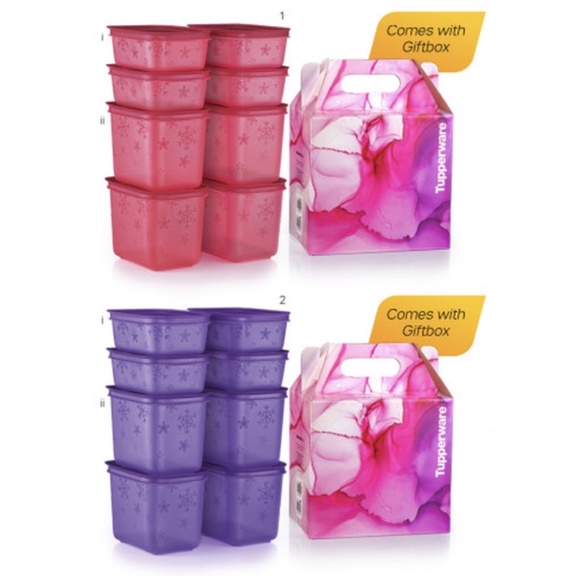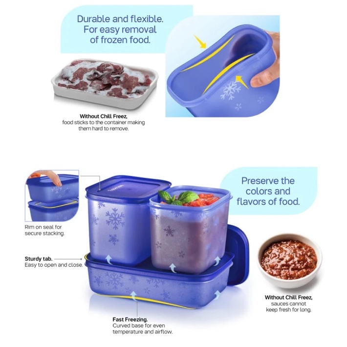 Tupperware Green & Blue Chill Freeze Small Low 450ml / 170ml Set 4 units Snowflakes Freezermate for Freezer use new