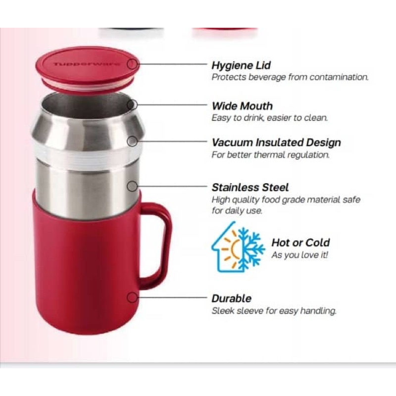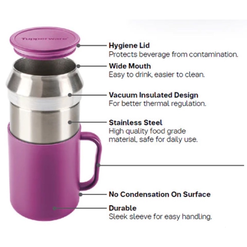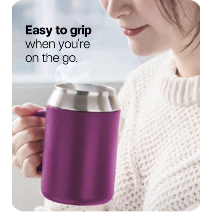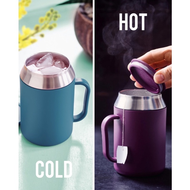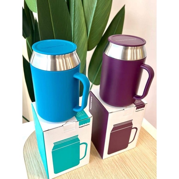 Tupperware Insulated Mug with cover 1 unit 400ml (Vineyard /Peacock blue / Green/black ) with gift box Hot Cold new item