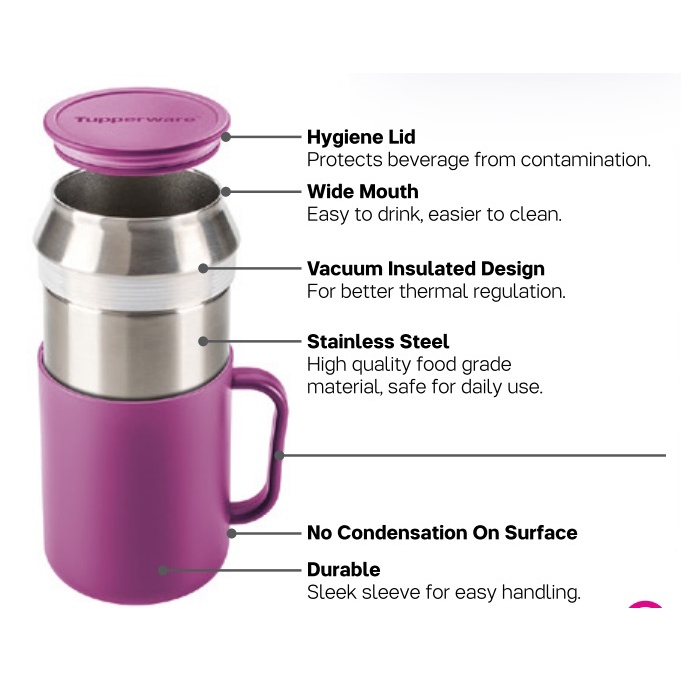 READY STOCK Tupperware: Insulated Mug 400ml Red&Blue & Turqoise&Purple