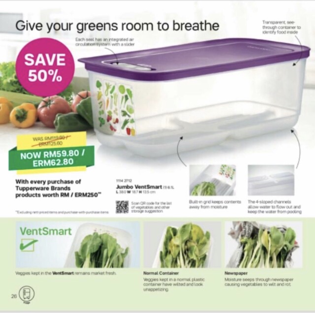 Tupperware Jumbo Ventsmart 6.1L Fridgesmart Vent Smart