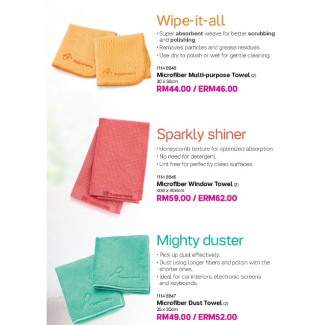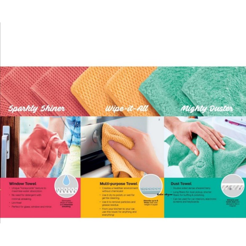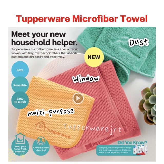 Tupperware Microfiber Towels Cloths : special fabric woven with tiny, microscopic fibers that absorb bacteria and dirt