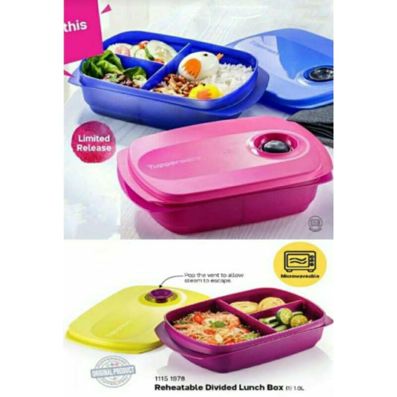 Tupperware Microwaveable Divided PURPLE Lunch Box 1L X1pc (High Quality Lunch Box) TABAO Lunch box membership set Green