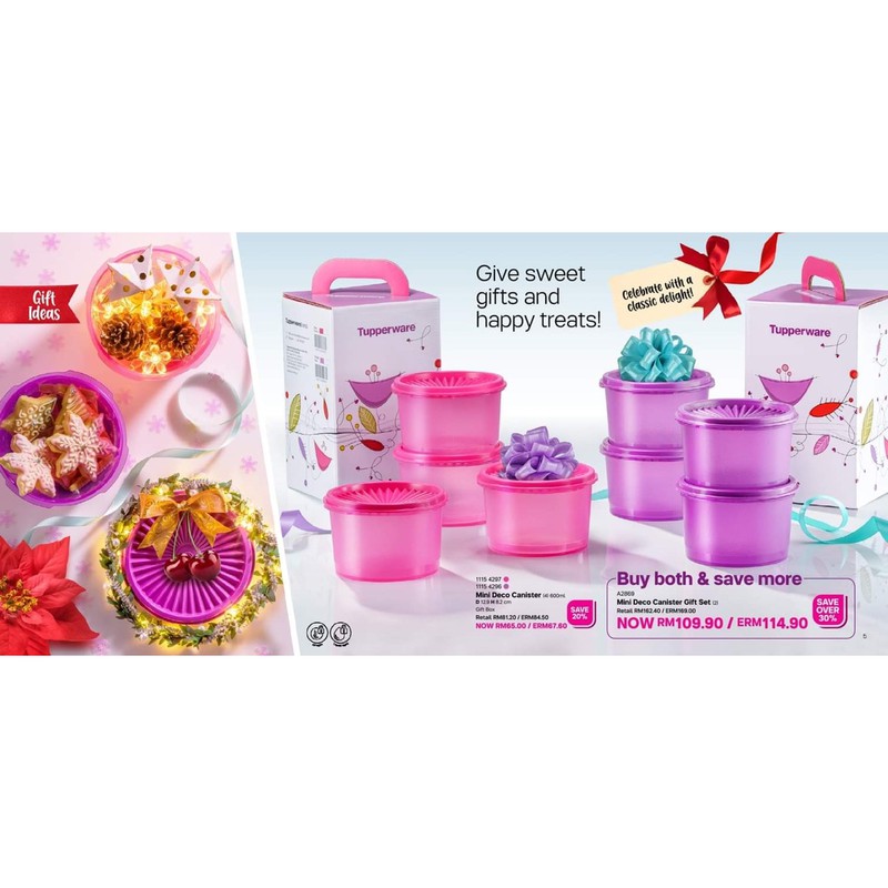 Tupperware Mini Deco Canister Gifts Set 600ml 1set 4pcs