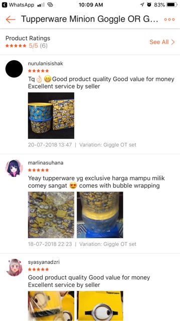 Tupperware Minion Goggle OR Giggle Canister (2pcs/set)