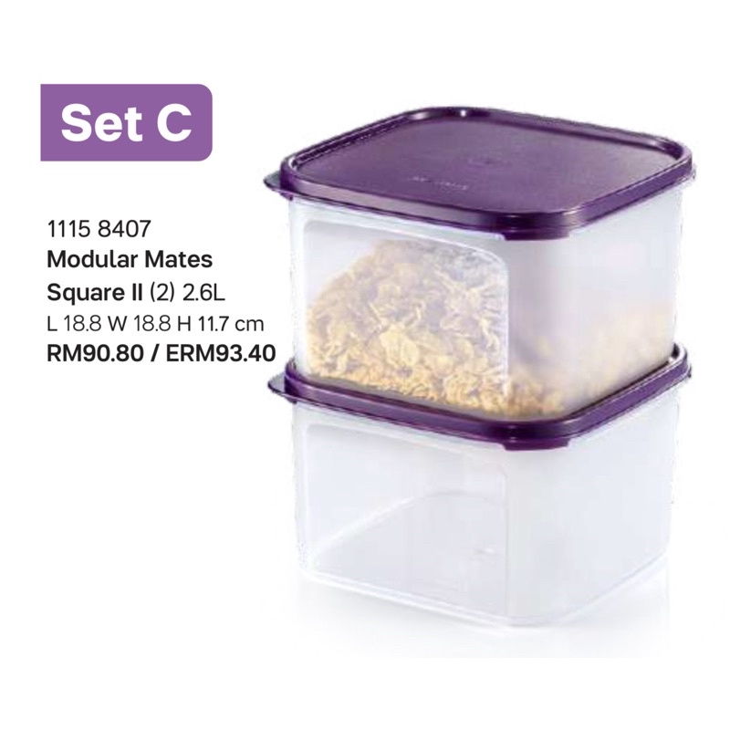 Tupperware Modular Mates Square II (1pc/2pcs)