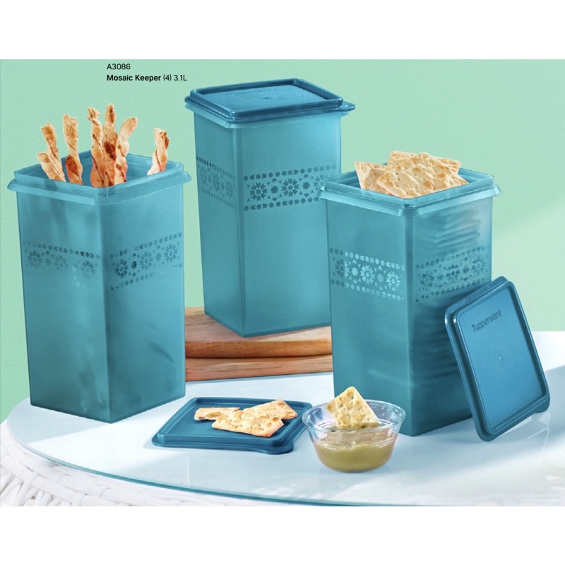 Tupperware Mosaic Keeper 3.1L (1pc) Tall Square Container Green/Red