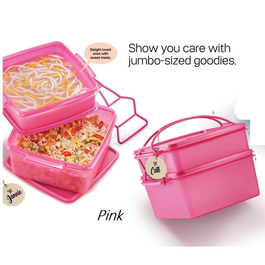 Tupperware Pink Jumbo Goody Box with Cariolier