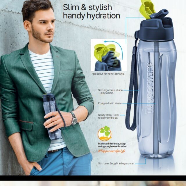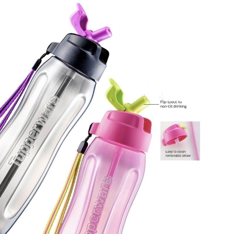 Tupperware Slim Eco Bottle 1.0L With Straw and Strap 1pc