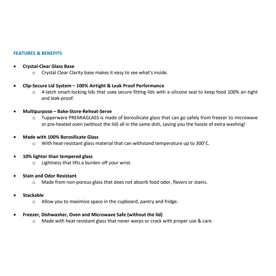 Tupperware - Premia Glass (Bake-store-reheat-serve)
