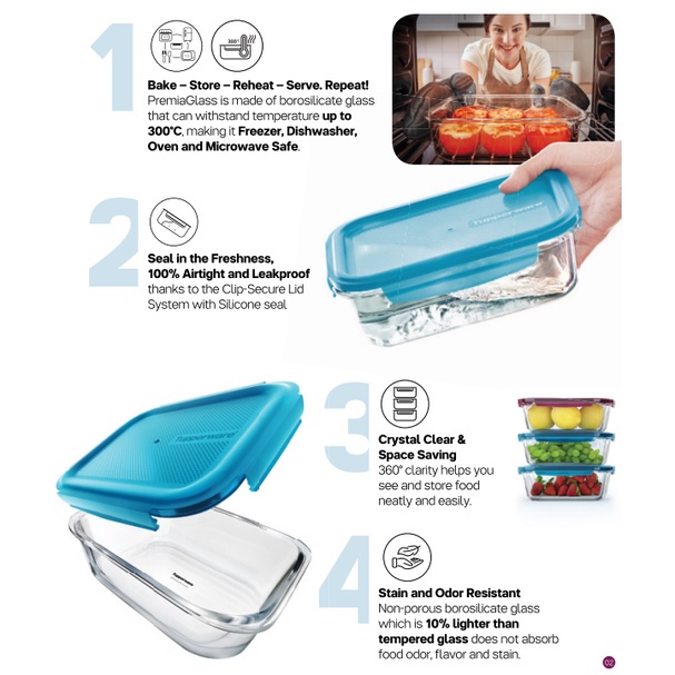 Tupperware Premia Glass Glasslock Rectangular 1L