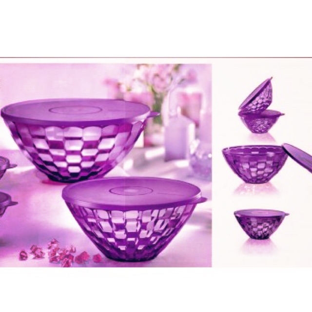 Tupperware Prism Bowl Purple Full Set (4pcs) Level Prism Bowl 500ml + 2L + 1.5l