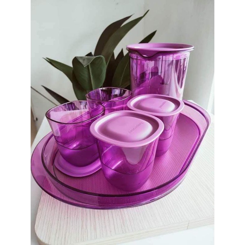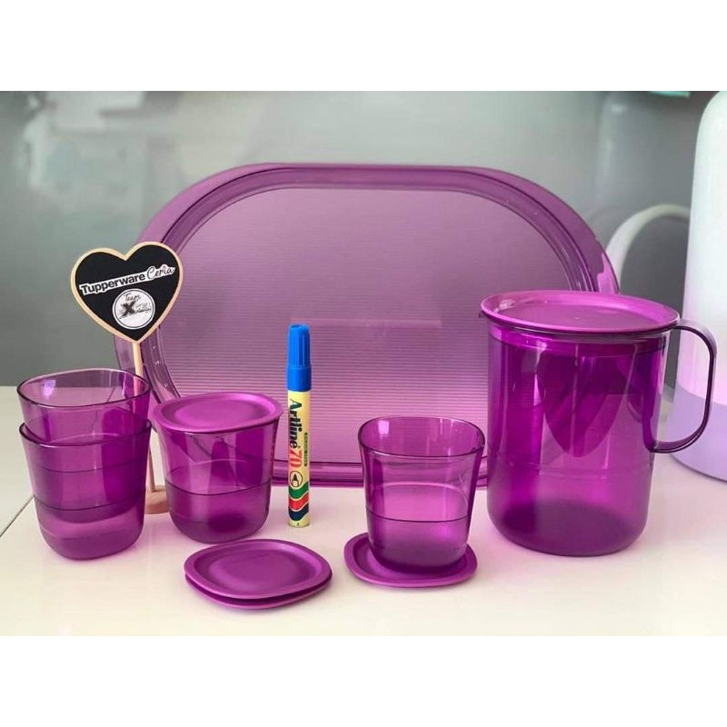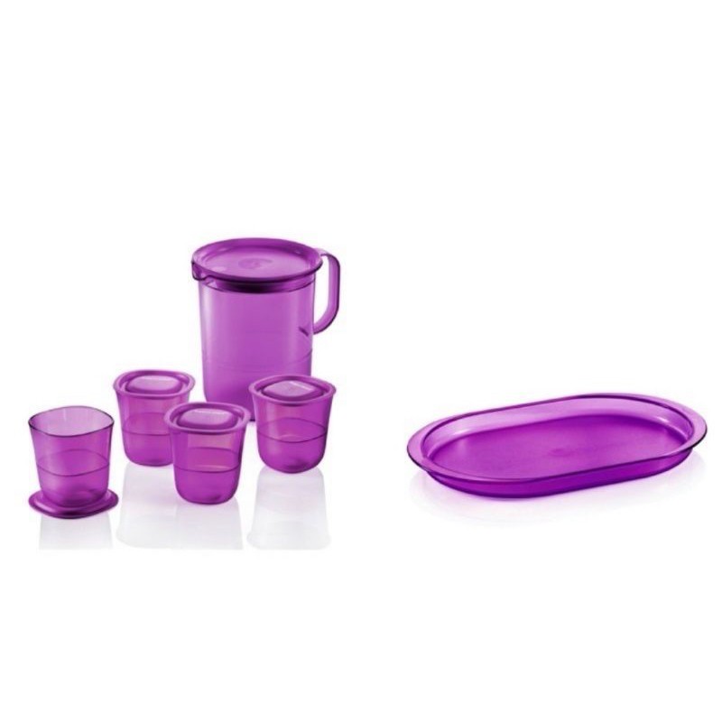 Tupperware Purple Crystalline Pitcher 1.2 L (1)/ Glass Set (4)/Serving Tray