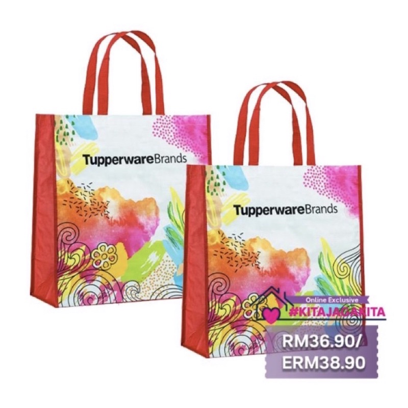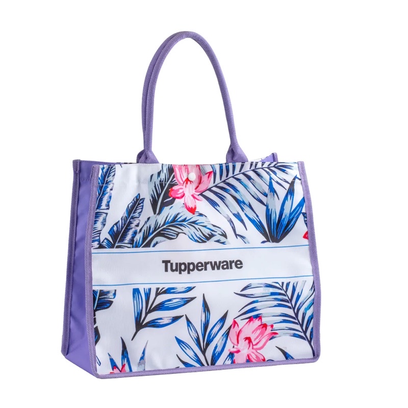 Tupperware Purple Floral Canvas Tote Bag / Uniquely Malaysia Shopping Bag Jute Bag 1 piece new ready stock