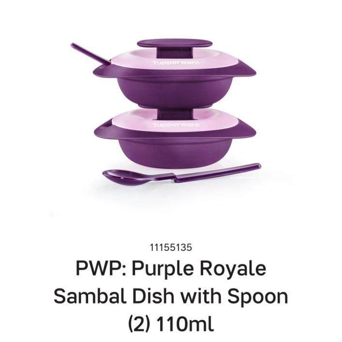 Tupperware Purple Royale Round Server (1.6L) and Sambal Dish (110ml) With Serving Spoon - Microwaveable