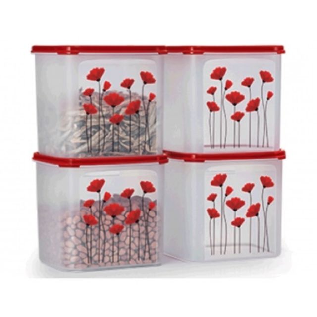 Tupperware Red Poppy Garden MM Square III (1) 4L