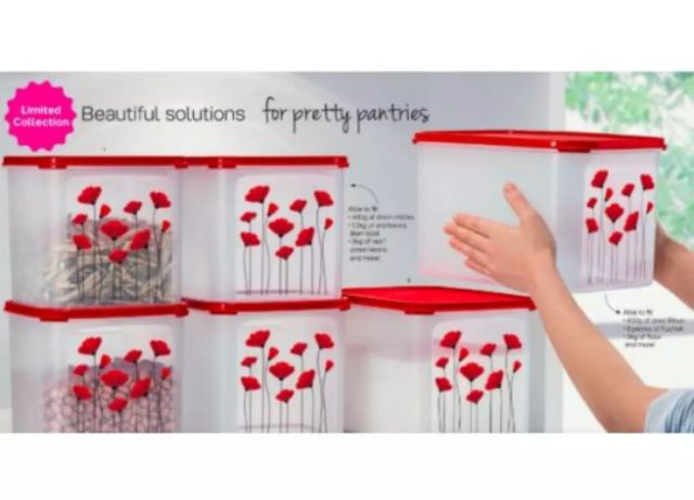 Tupperware Red Poppy Garden / Modular Mates Square III (1) 4.0L