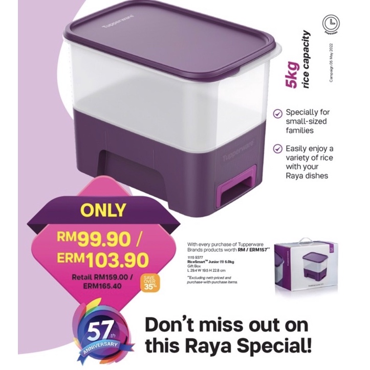 Tupperware Rice Smart 10L and Tupperware Rice Smart Junior