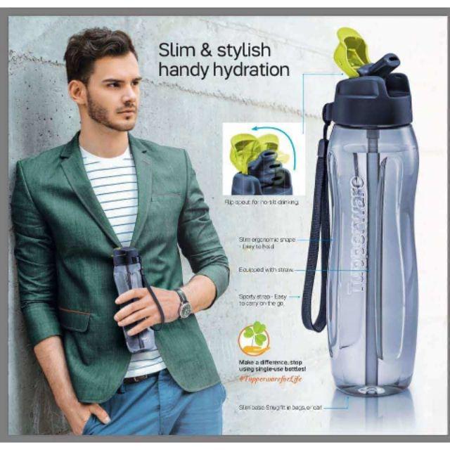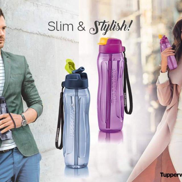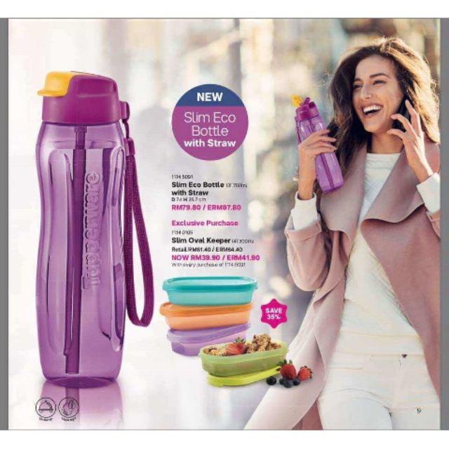 Tupperware Slim Eco Bottle 750ML with Straw and PWP Slim Oval Keeper