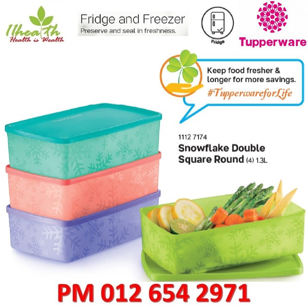 Tupperware Snowflake Double Square Round 1,300ml Fridge & Freezer