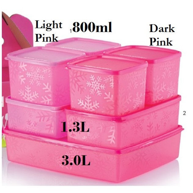 Tupperware : Snowflakes or Square Round Set Pink **1pc** 800mL, 1.3L, 3L Cool Square Round 1.4L