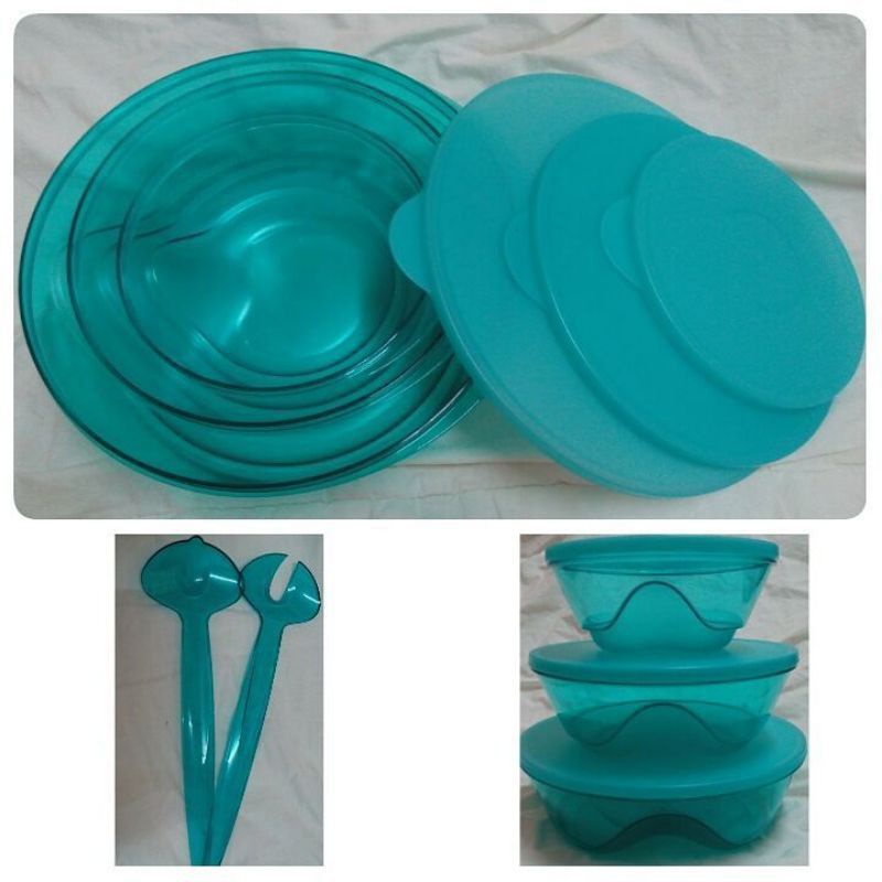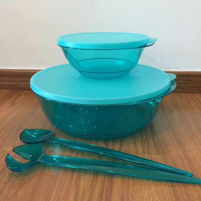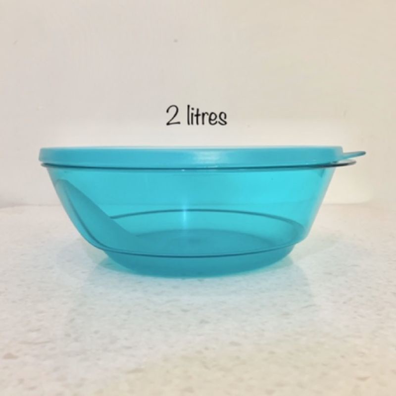 Tupperware Stackable Bowl (2L / 1L / 2 Pcs) Blue Round Salad Party Drinks Bowl Big Container Box