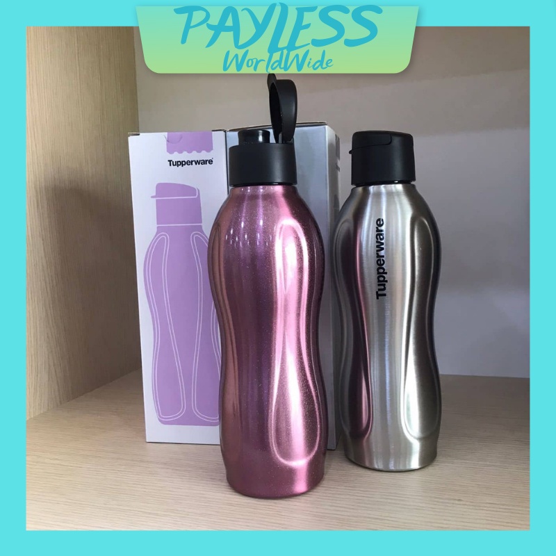 Tupperware Stainless Steel Eco Bottle Flip Top 880ml Ungu Silver Botol Air Gift Set Limited Edition Design Cold & Warm