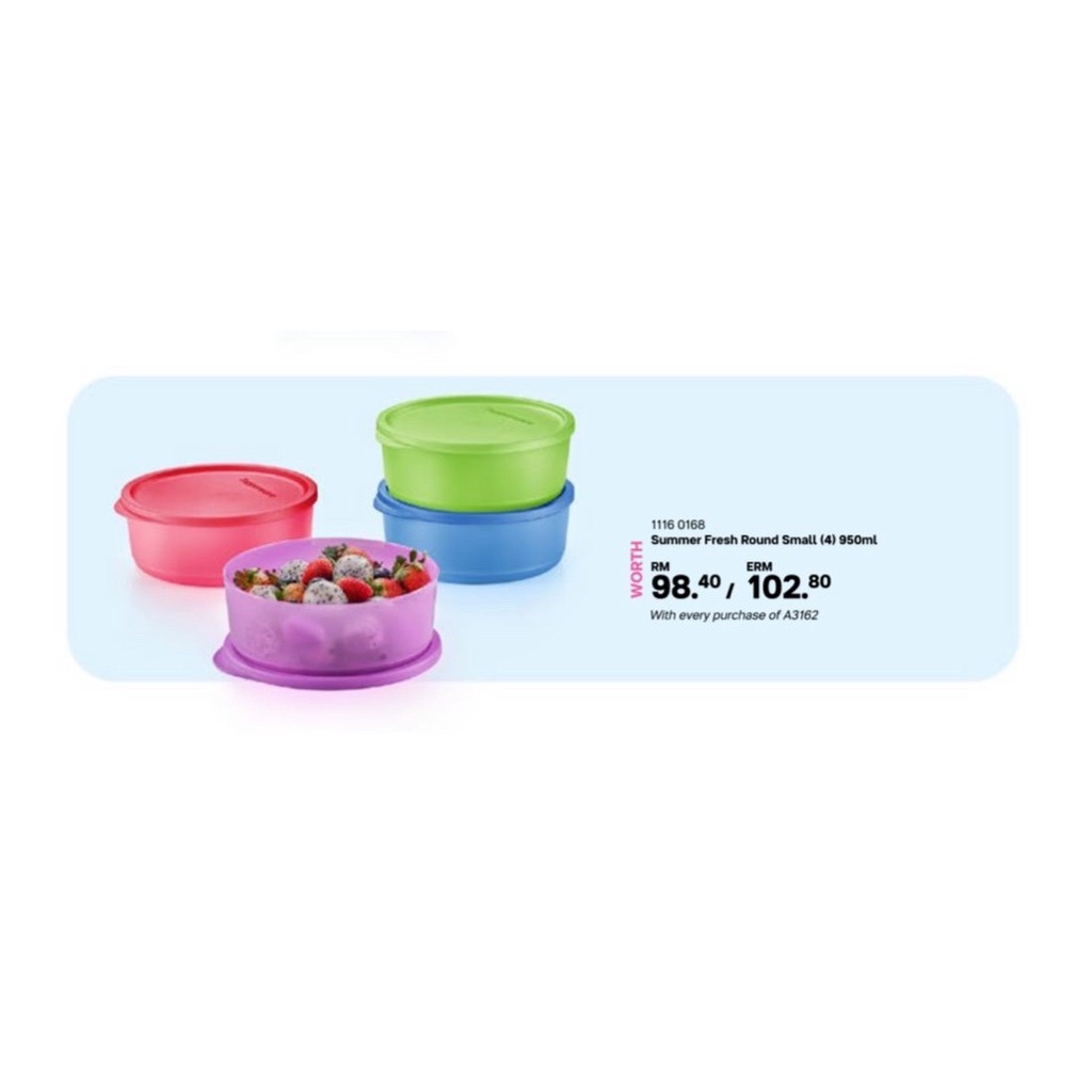 Tupperware Summer Fresh Round Small (4) 950ml