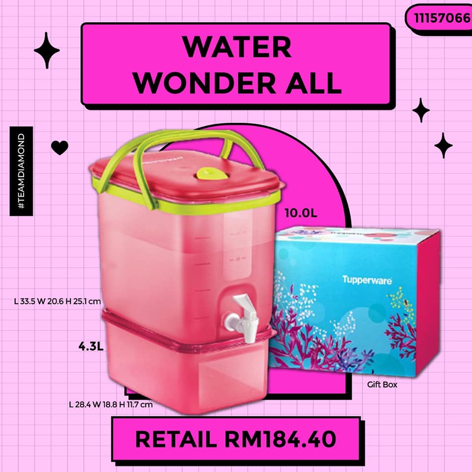 Tupperware Wonderful SET - Water Dispenser 10L +Modular Mates Rectangular 4.3L (Tupperware Water Wonder All 10L)