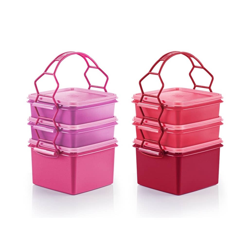 Tupperware tiffin purple double deep, bekas tingkat tupperware, bekas makanan berkelah