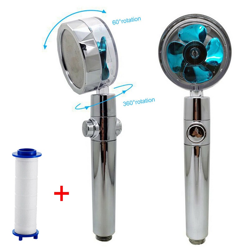 Turbo Shower Head High Pressure Propeller Turbo Fan Hydro Jet Rotating Shower Head Shower Shower Head + Filter