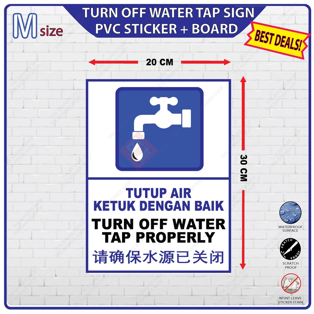 Turn Off Water Tap Properly After Use Sign (Sticker Only / Sticker + Board)