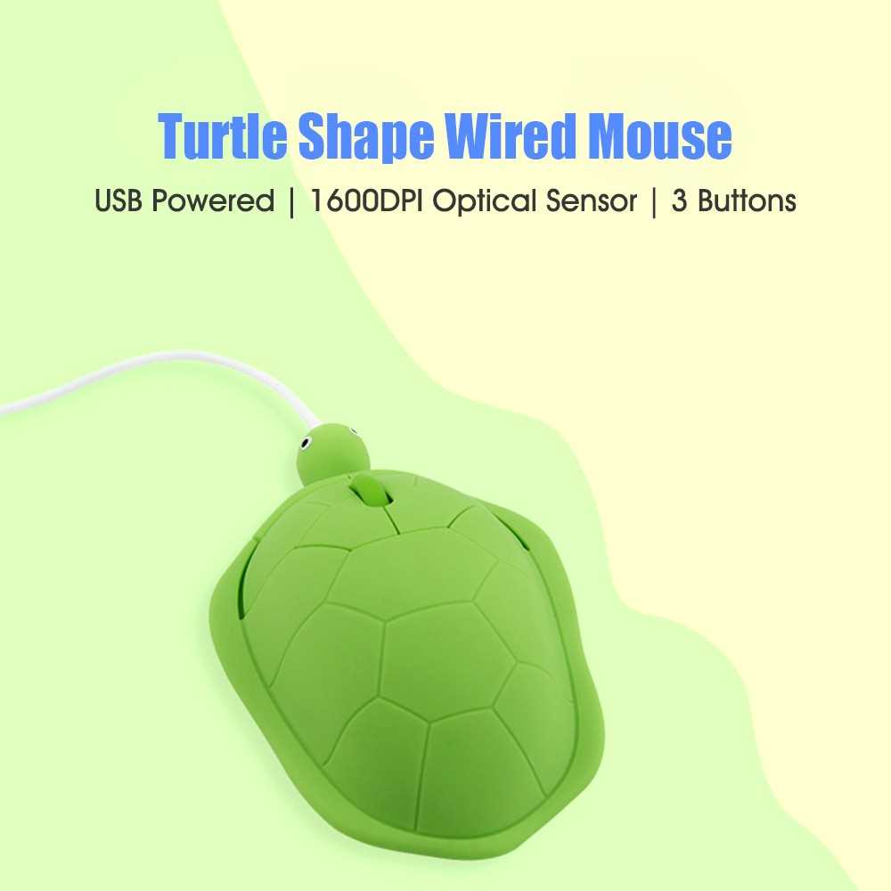 Turtle Shape Wired Mouse Cute Mini Laptop Mouse 1600 DPI Optical Sensor/3 Buttons/Ergonomic Design/USB Powered Computer