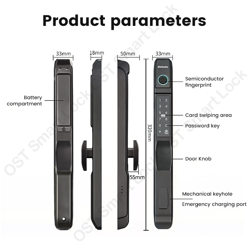 Tuya Smart Sliding Door Lock With Doorbell Biometric Fingerprint Electronic Digital Lock For Main Door With WIFI Remote Unlock