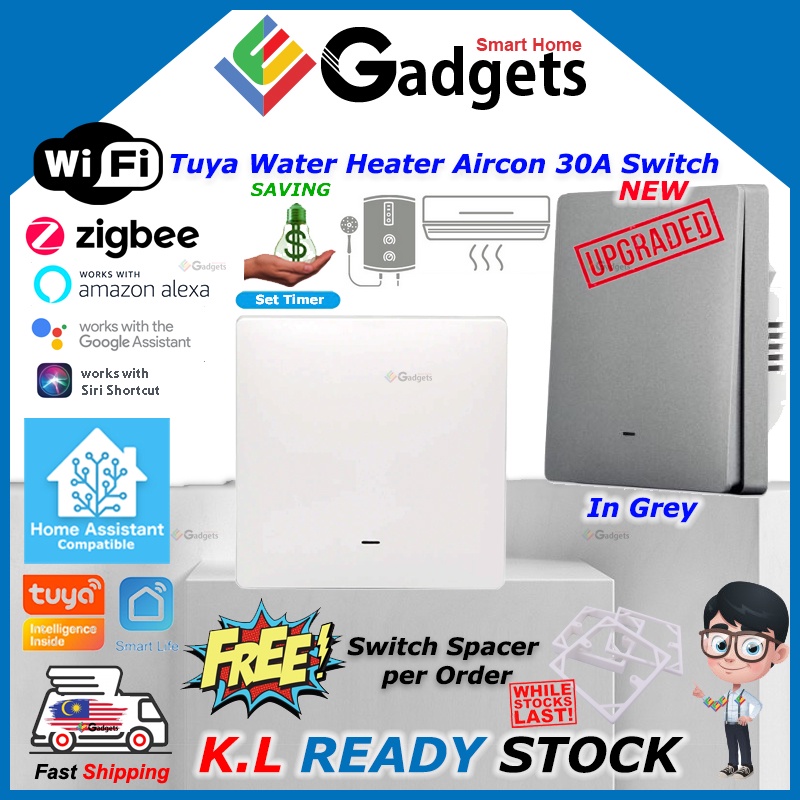 Tuya Water Heater Air Cond 30A Push Switch WiFi ZigBee works with Smart Life Google Home Assistant Alexa Smart Home