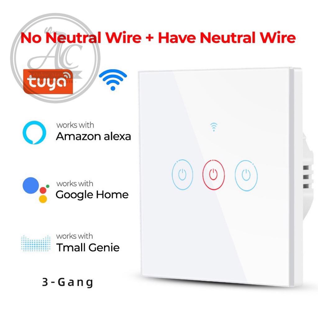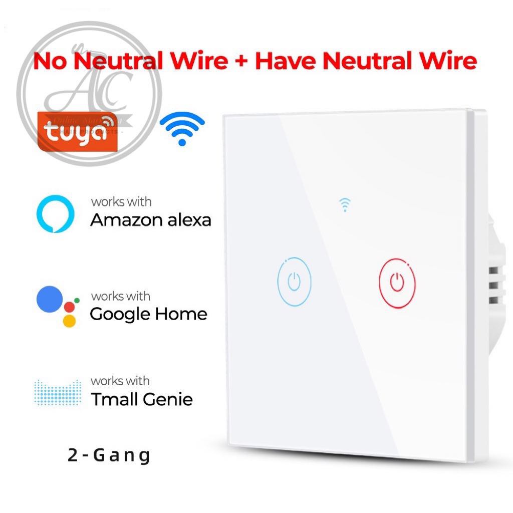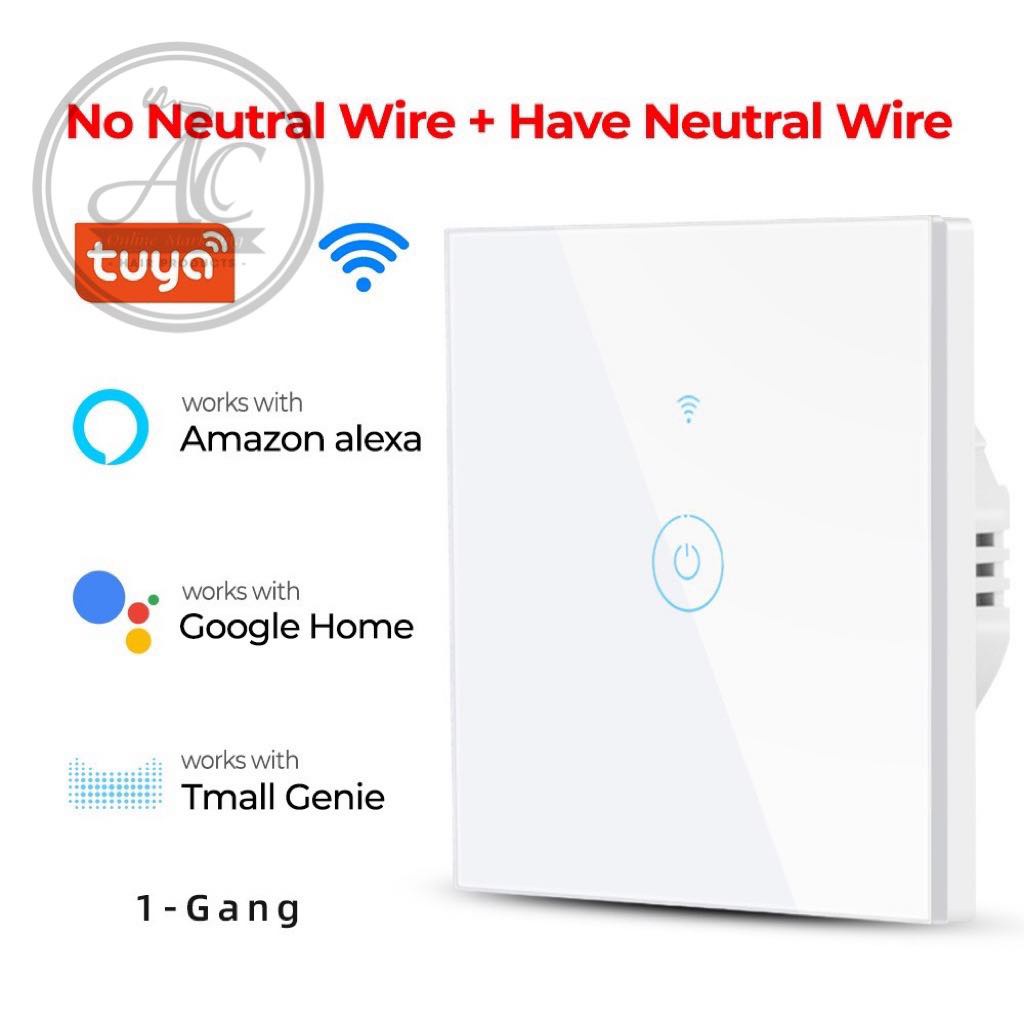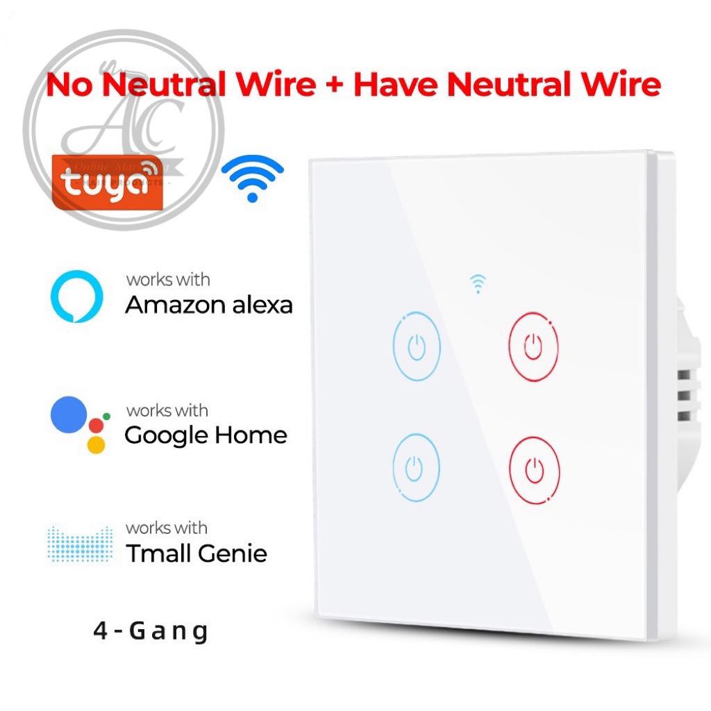 Tuya WiFi Touch Wall Smart Switch Light No Neutral Wire and Neutral Wire 1,2,3,4 Gang tmall genie Smart Home Smart Life