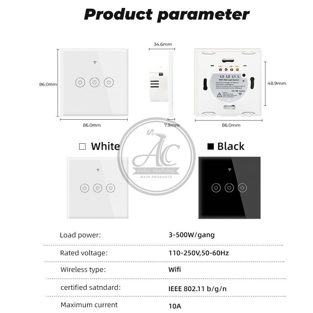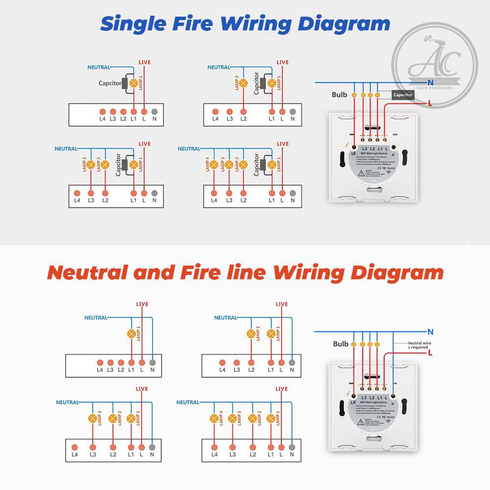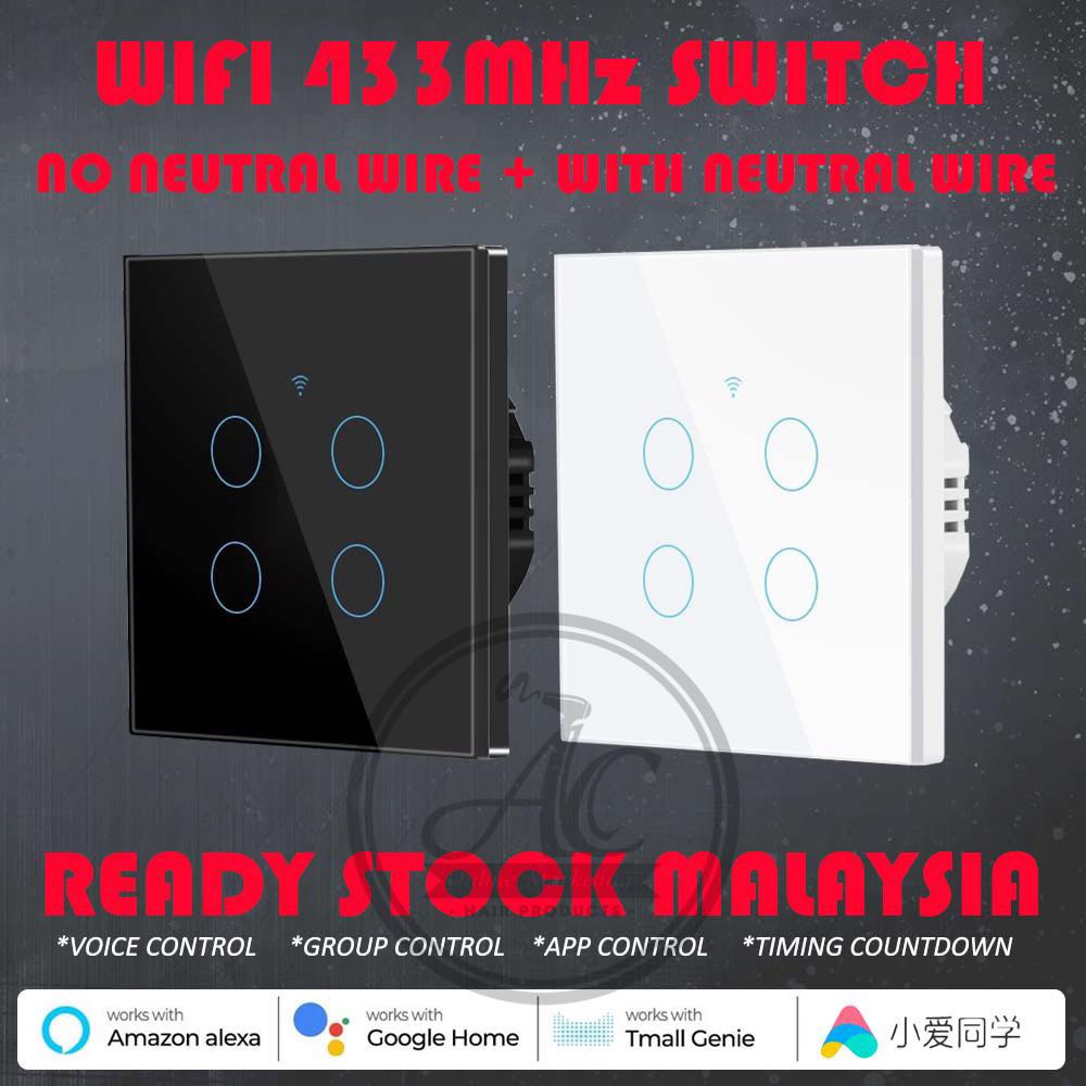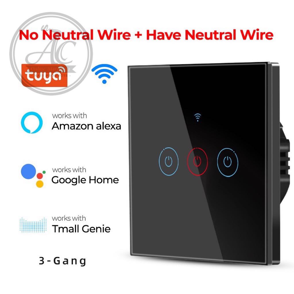 Tuya WiFi Touch Wall Smart Switch Light No Neutral Wire and Neutral Wire 1,2,3,4 Gang tmall genie Smart Home Smart Life