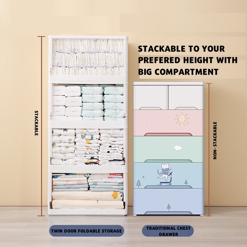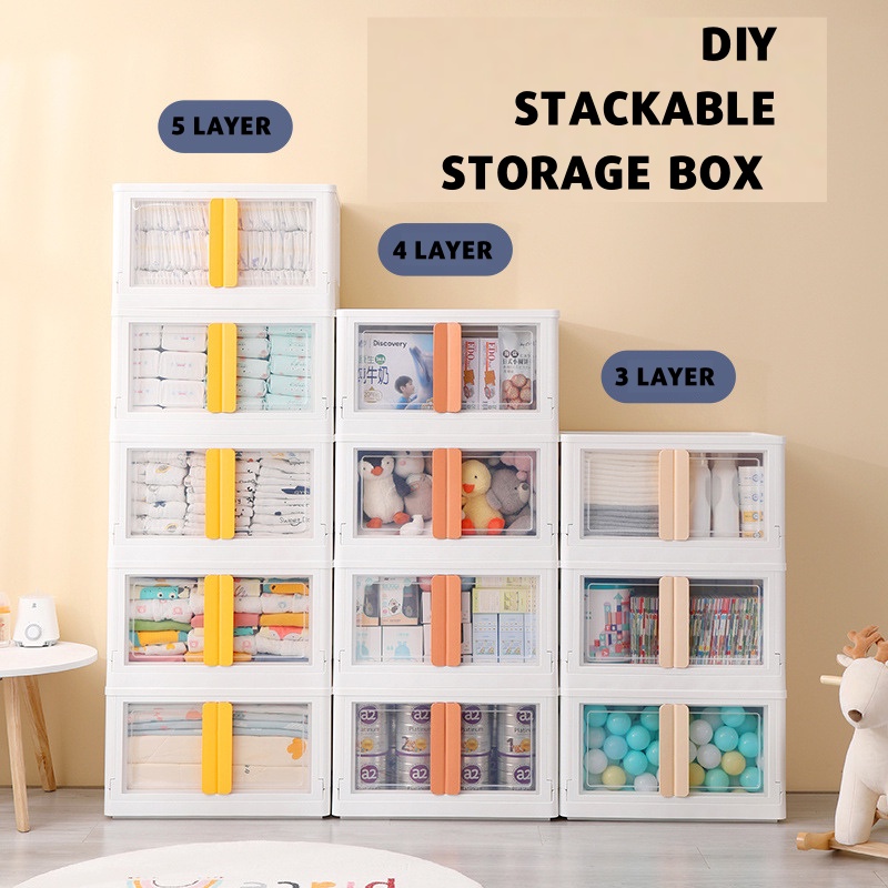 Twin Door Foldable Big Plastic Cabinet Storage Box Front Open Multipurpose Stackable Storage Container Storage Box Large