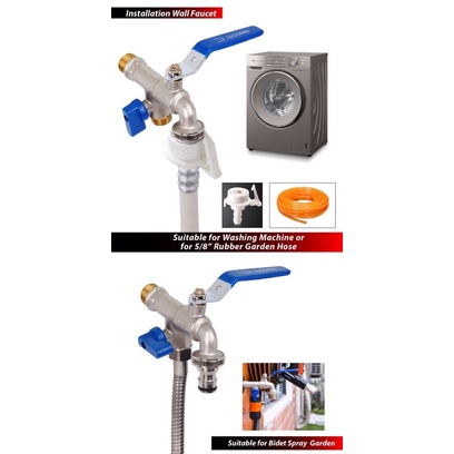 Two Way Wall Washing Machine Double Brass Bib Tap