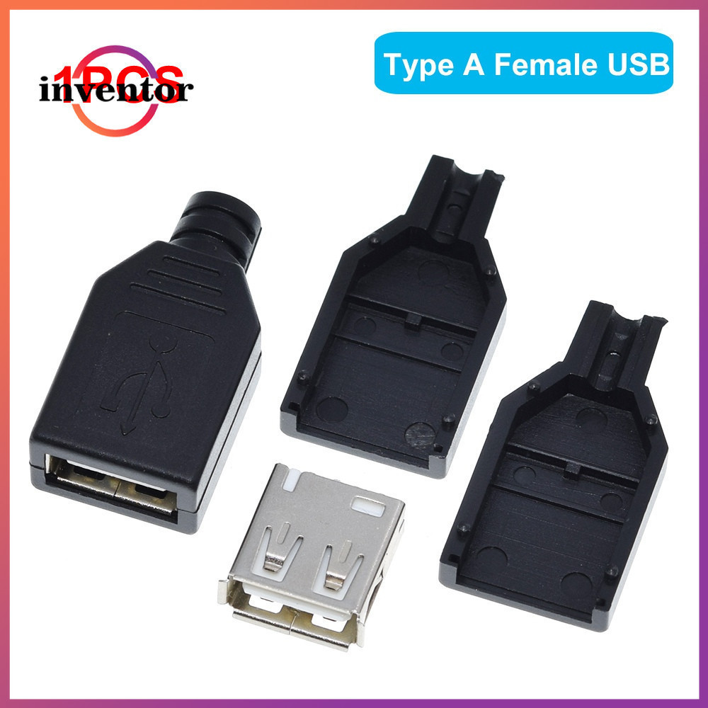 【5 SET】Type A Male USB 4 Pin Plug Socket Connector +Type A Female USB 4 Pin Plug Socket Connector With Black Plastic Cover