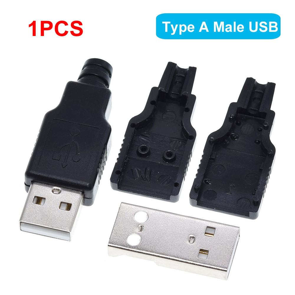 【5PCS】Type A Male USB 4 Pin Plug Socket Connector +Type A Female USB 4 Pin Plug Socket Connector With Black Plastic Cover