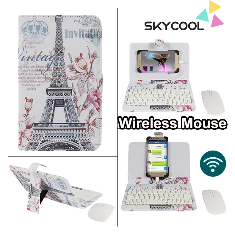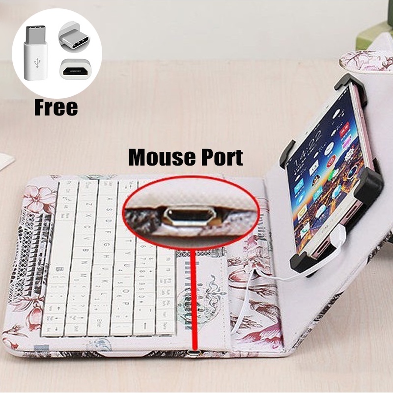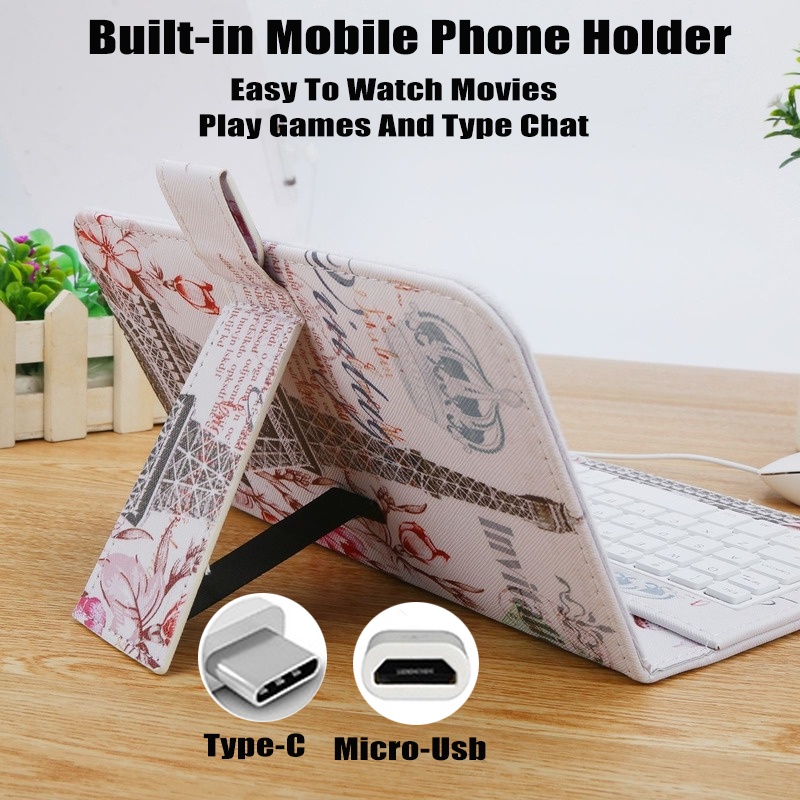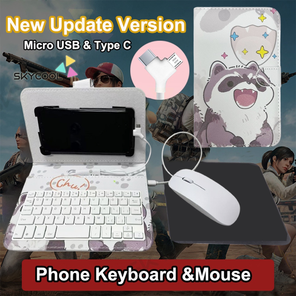 Type-C/Micro-Usb Wired Phone Keyboard Mouse Set With PU Leather Cover For Android Phone Keyboard And Mouse With OTG Function For Online Classroom Learning Home Office