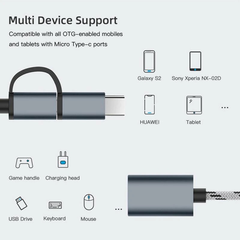 Type-C OTG + Micro 2 in 1 USB OTG Adapter for Android Smart Phone Connect to Printer Pendrive Mouse Keyboard etc