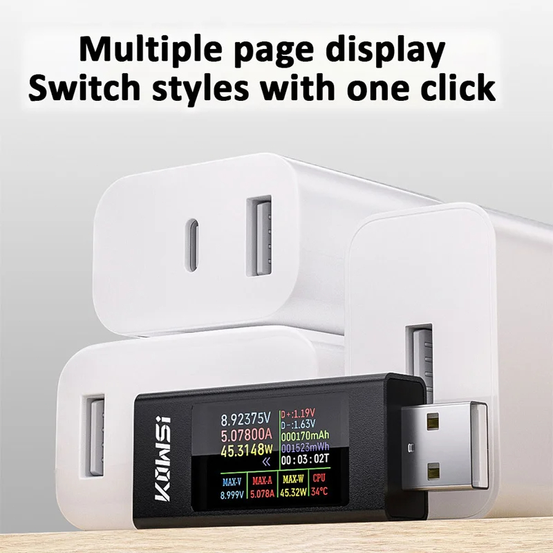Type-C/USB Current and Voltage Monitor Multi-function Digital Display DC Voltage Ammeter Power Meter Cell Phone Charging Tester