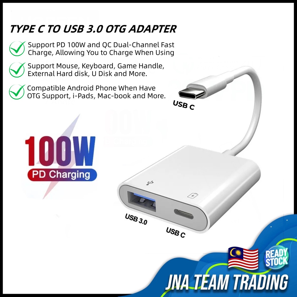 Type C to USB 3.0 Splitter OTG Adapter PD 100W Fast Charging Conventer For Samsung Xiaomi Huawei Mouse