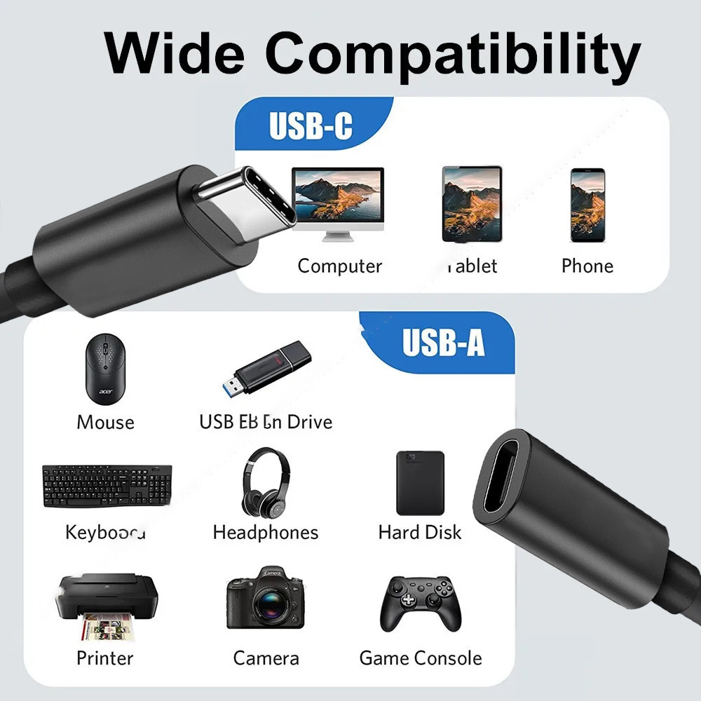 Type-c Male To Female Extension Cable Waterproof High-speed USB C Extender Charger Wire Connector for Laptop Tablet Cellphone