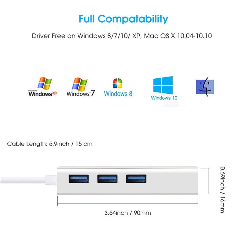 Type-c USB Ethernet Adapter 3 Ports USB 3.0 Hub USB to Rj45 Lan Network Card for Macbook pro Mac