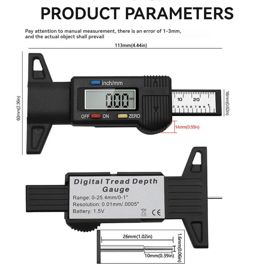 Tyre Tire Tread Depth Tester Meter Digital LCD Depth Gauge Car Caliper Tire Wear Detection Measuring Tool