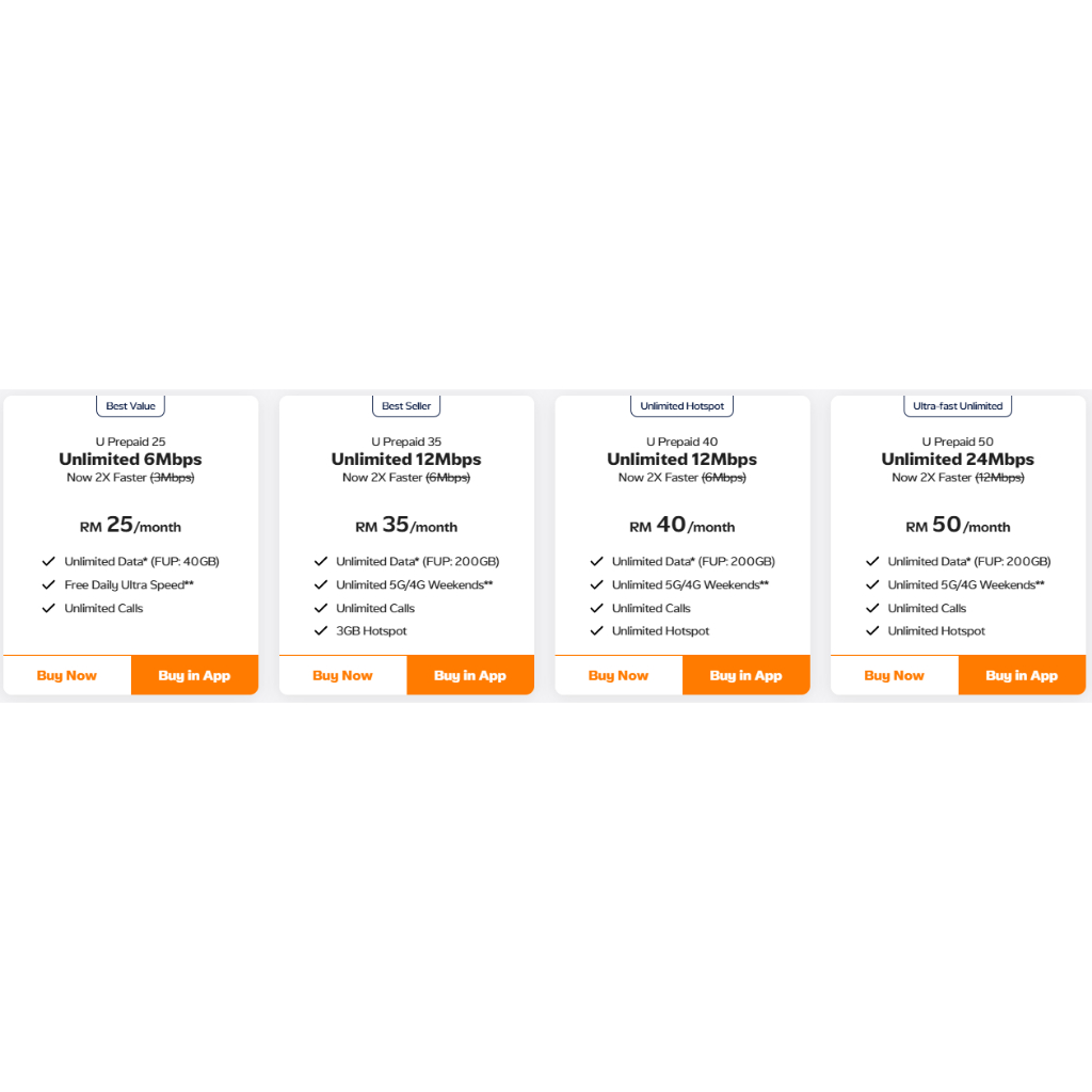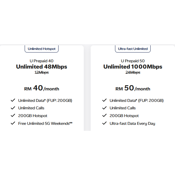U MOBILE NEW 5G PREPAID PACK PLAN BORNEO U25 U35 U40 AND U50 NEW SIM CARD OR ESIM