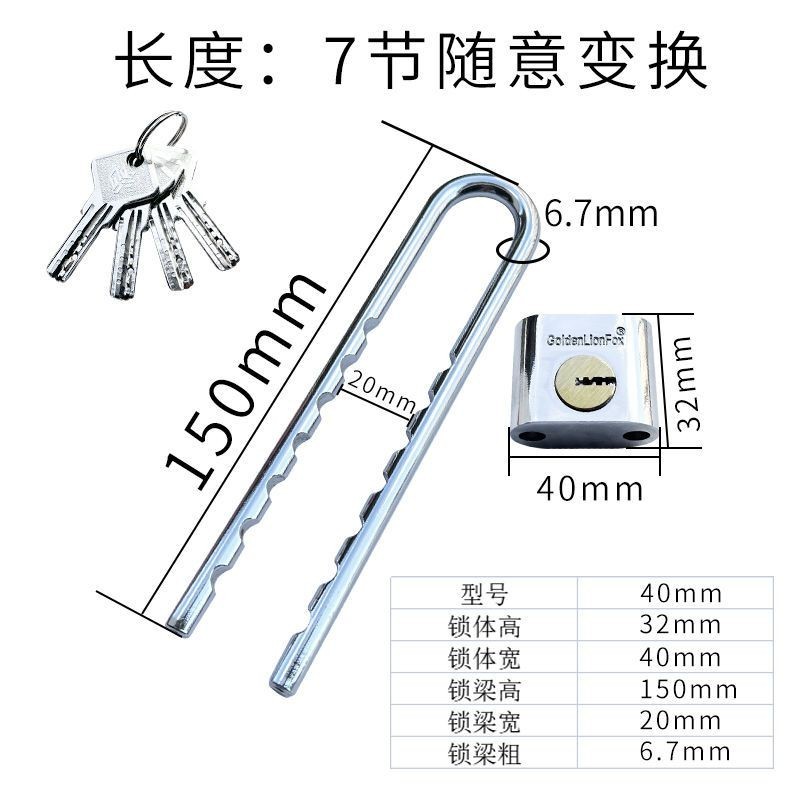 U-shaped Lock Glass Door Lock Cabinet Door Handle Padlock Sliding Door Long Lock Shop Door Padlock Head Double Door Anti-Theft Lock